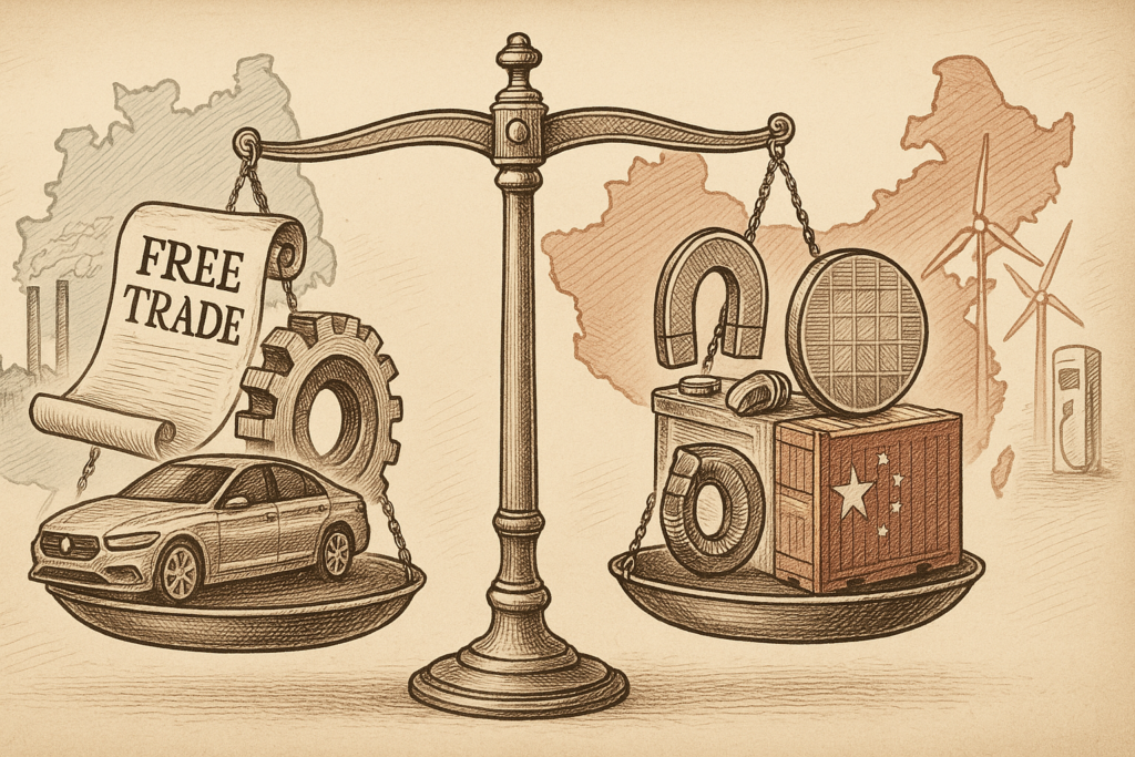 German manufacturing (autos, wind, electronics, machine tools) depends heavily on Chinese rare earths, permanent magnets, battery components and other critical inputs. At the same time, German carmakers sell a huge share of their high‑margin vehicles in China and rely on joint ventures there. This leaves them trapped between Brussels’ new defensive trade posture and Beijing’s capacity to retaliate. Germany has moved from “we export sophisticated technology and import cheap inputs” to “we depend on a systemic rival for both inputs and sales — and that rival can cut us off”.